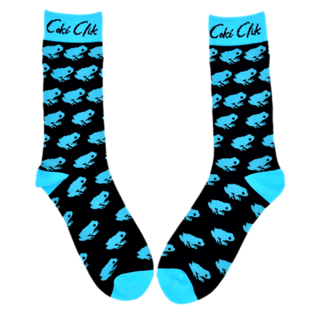 ¡Presentamos nuestros calcetines de algodón 100% de alta calidad con temática de cómics! El diseño, que presenta varias ranas coquí en azul con fondo negro, está inspirado en los puntos de los cómics que varían en tamaños. Estos calcetines son perfectos para cualquier atuendo casual, mientras que el diseño es único y divertido, brindándote una apariencia moderna y moderna. Fabricados con materiales de alta calidad, estos calcetines son suaves y cómodos de usar durante todo el día. Ya sea que salgas a caminar, vayas al gimnasio o simplemente te relajes en casa, estos calcetines seguramente harán que tus pies se sientan geniales. ¡Consigue tu par hoy y únete al Clik!